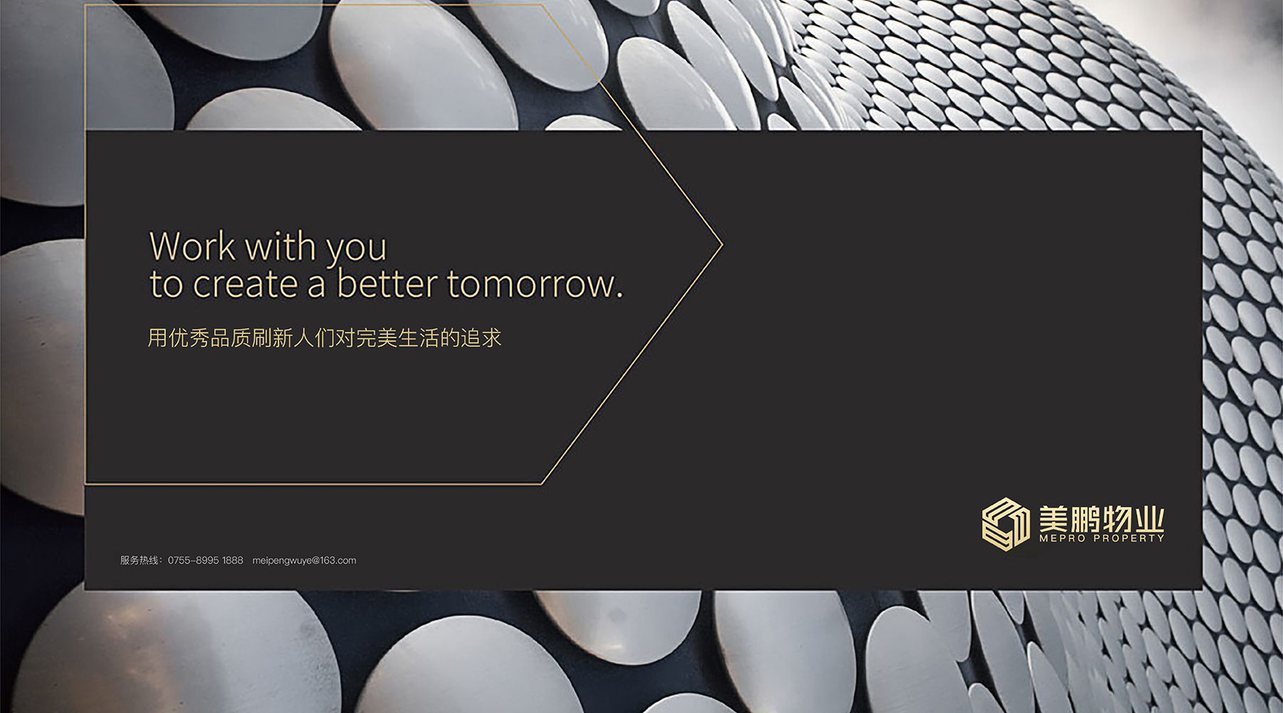 传达出——无论是服务领域,还是物业管理行业,美鹏都希望成为行业领军人的美好愿景。